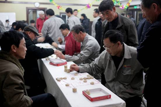 公司員工在進(jìn)行象棋比賽