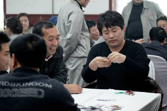 公司員工在進(jìn)行撲克比賽
