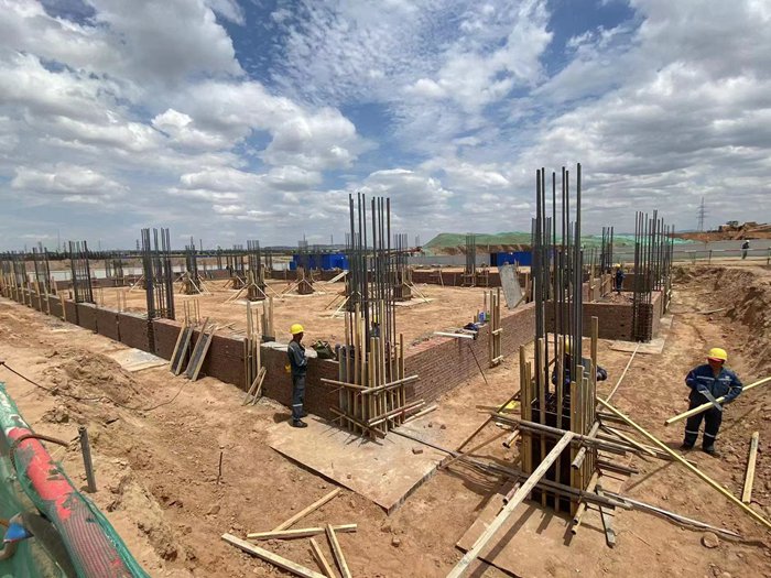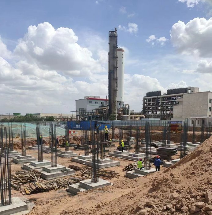目前,開工的單體有氣化單元(氣化裝置框架,渣及灰水裝置框架,變電所及機(jī)柜間,翻車機(jī)室裝置,筒倉(cāng)裝置……); 廠前區(qū)單元(生產(chǎn)性用房,食堂浴室,消防及氣防站);中控室單元等。