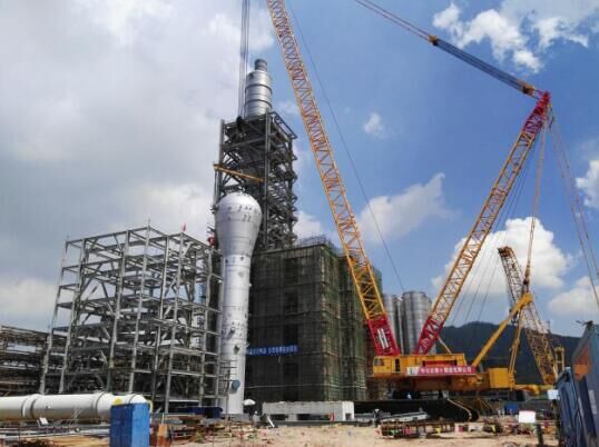 圖為4000噸履帶吊在吊裝LLDPE裝置反應(yīng)器