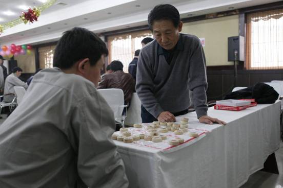 公司員工在進(jìn)行象棋比賽